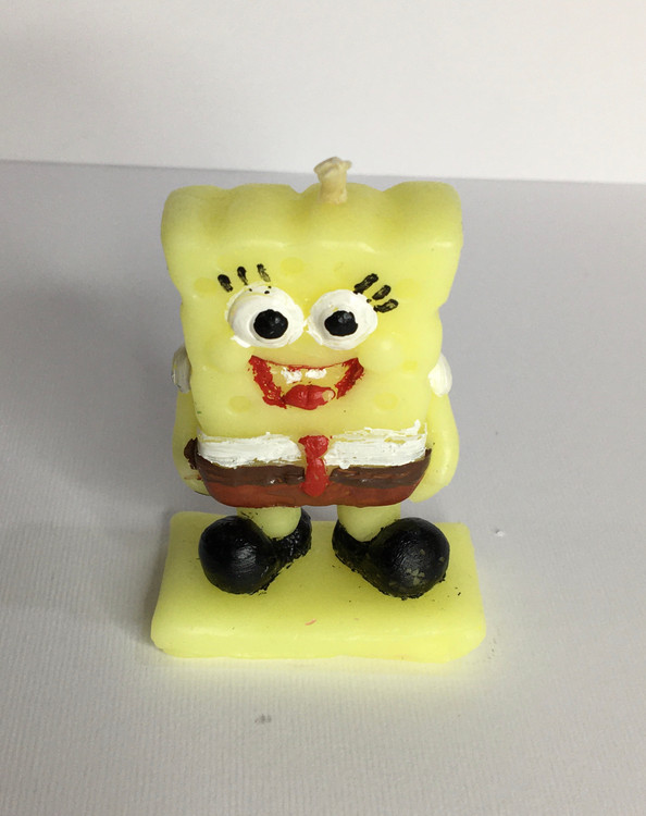 شمعی دست ساز با طراحی فانتزی به شکل عروسک های پاتریک و باب اسفنجی ، مناسب برای تزئین فضاهای شاد و کودکان .
