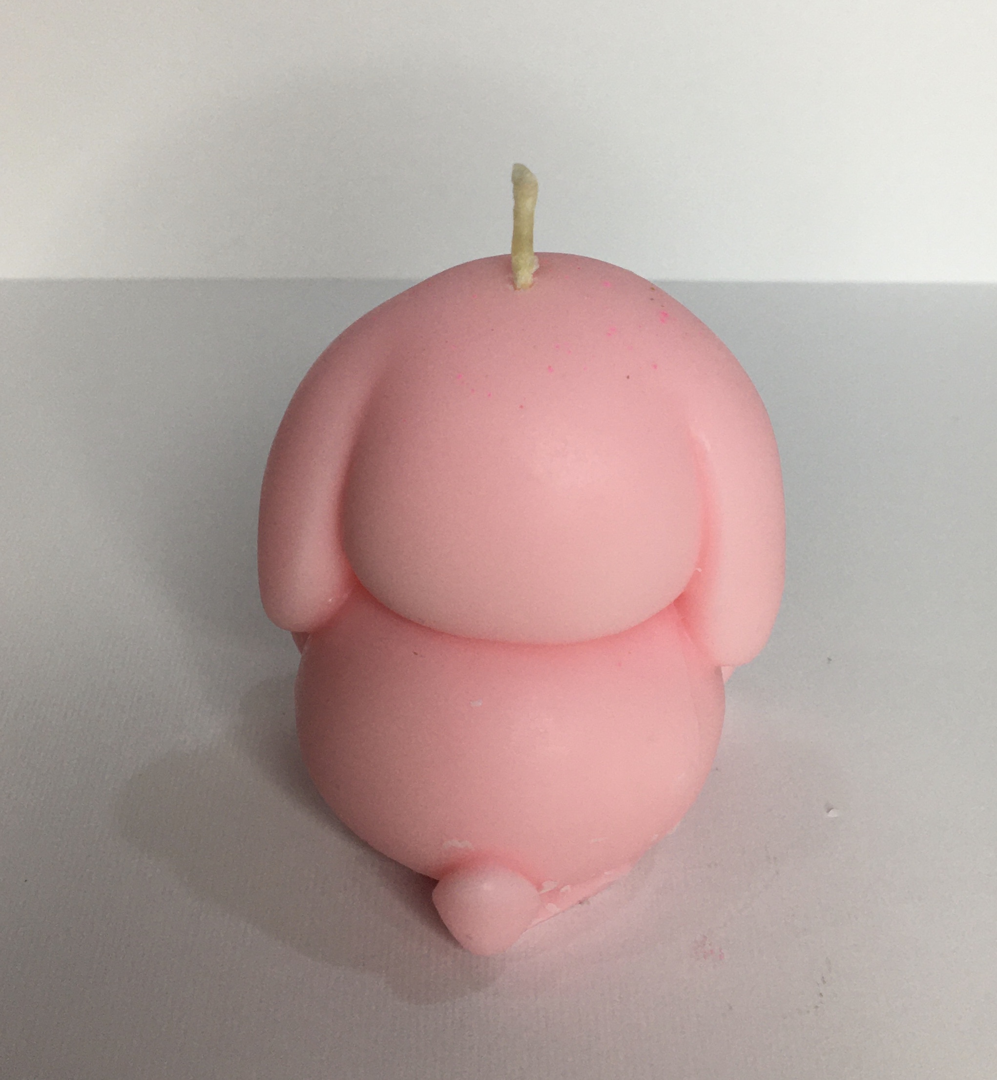 شمعی دست ساز با طراحی فانتزی و با مزه به شکل خرگوش توپلی ، مناسب برای دکوراسیون های خاص و هدیه ای متفاوت .