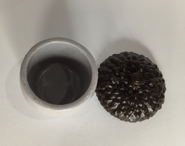 جا شمعی فانتزی بلوط از جنس سنگ مصنوعی است و با رنگ اکریلیک رنگ آمیزی و ضد آب شده است. می توان با پارافین پودری پر کرد و سپس با قرار دادن فیتیله در آن روشن نمود. پارافین پودری پس از هر بار روشن و خاموش شدن می توان پارافین اطراف فیتیله را خارج کرد و دوباره فیتیله گذاری نمود.