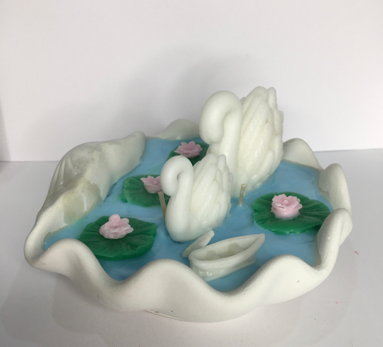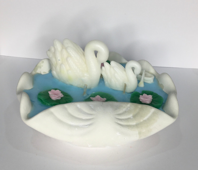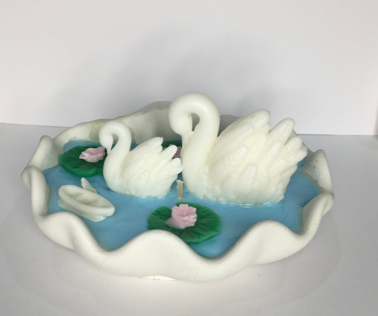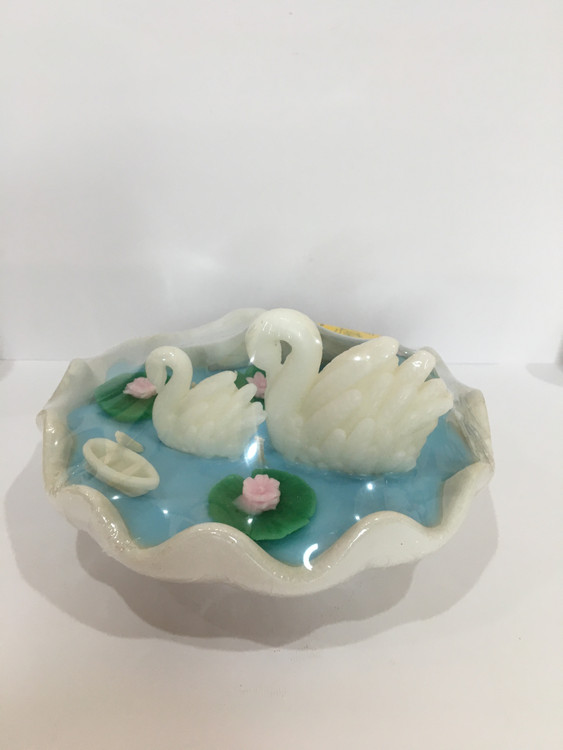 شمع فانتزی قوها در دریاچه با گل های نیلوفر و قایق کوچک در دریاچه بسیار زیبا و چشم نواز است و از پارافین با کیفیت تهیه شده است و بدون رایحه است و مناسب افراد حساس می باشد.