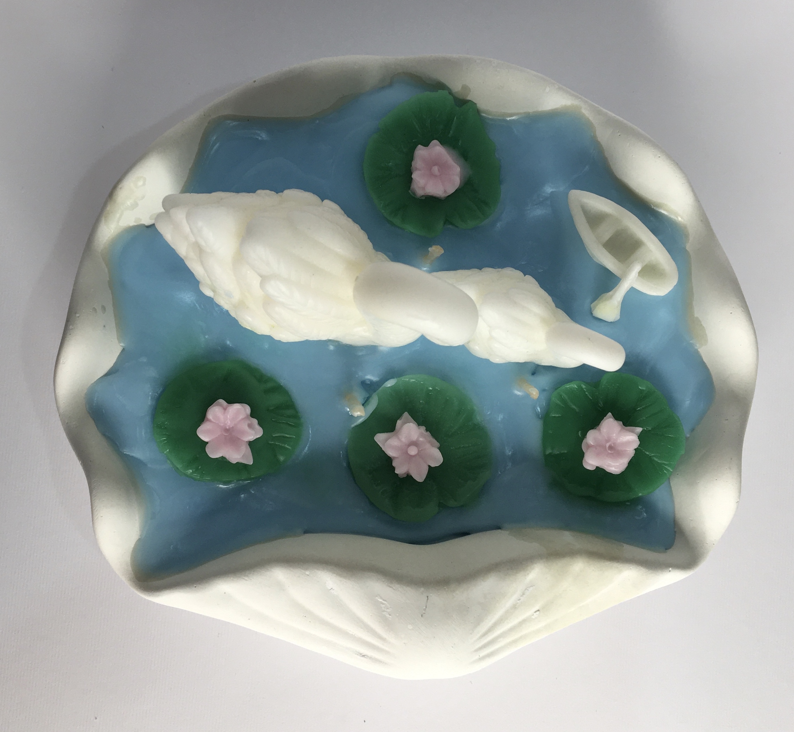 شمع فانتزی قوها در دریاچه با گل های نیلوفر و قایق کوچک در دریاچه بسیار زیبا و چشم نواز است و از پارافین با کیفیت تهیه شده است و بدون رایحه است و مناسب افراد حساس می باشد.